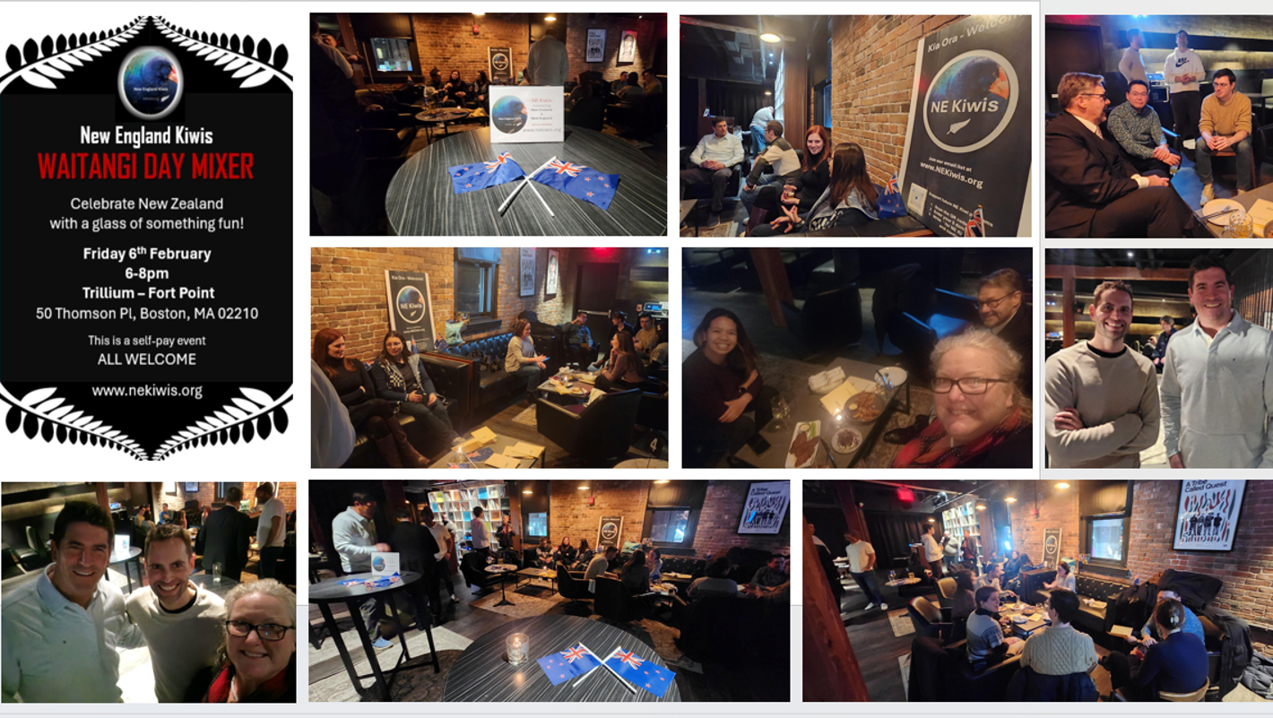 Hosted at Scottish restaurant The Haven in Jamaica Plain). We were delighted to welcome speakers Will Taylor (NZ Hon. Consul General) and Kiwi CEO Colin South (ArkeaBio) for a fireside chat about New Zealand’s place in the world, Colins extensive international business career, his participation at Davos Climate Conference, and a wide range of audience questions.